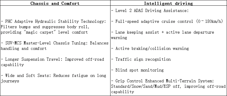 | 体の構造 | 5ドア、5人乗りのSUV | 5ドア、5人乗りのSUV |