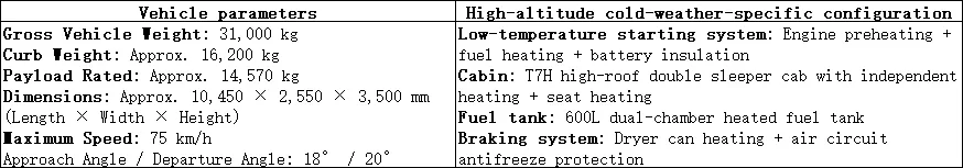 車両タイプ: エンジニアリング ダンプ トラック、高地および寒冷地向けの特別バージョン、鉱山やインフラ建設などの過酷なシナリオに最適